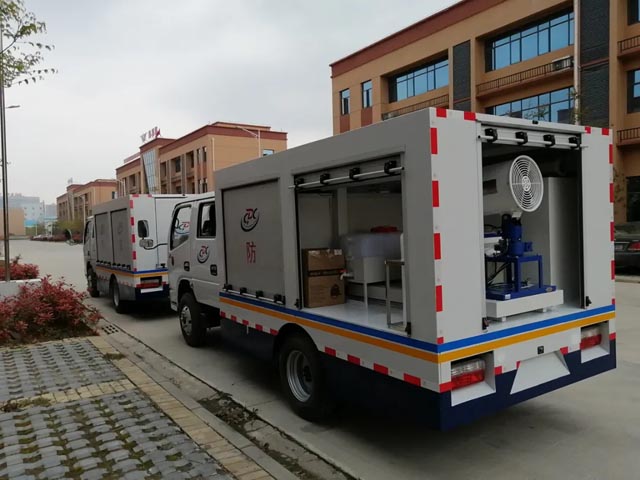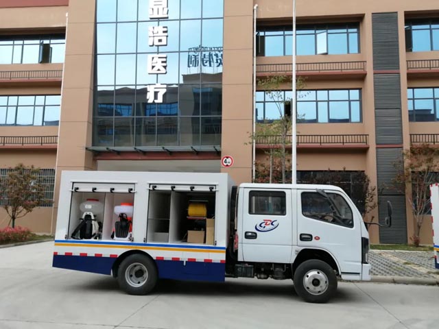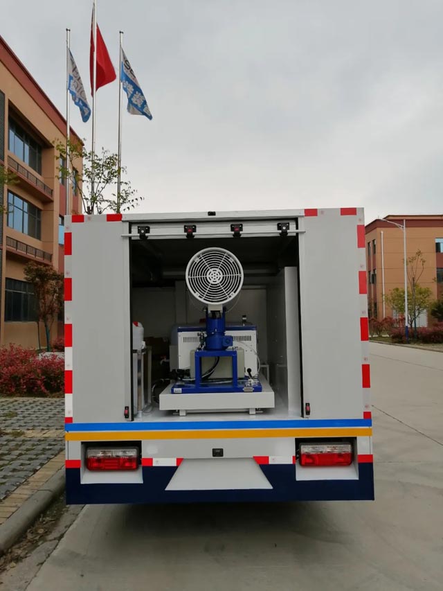用于消杀室外环境的细菌,病毒,和蚊蝇等媒介昆虫。车内配置超低容量喷雾机、常量喷雾机等设备。可消毒处理面积:>500㎡可连续反复充装;杀虫处理面积:2500—100000㎡。