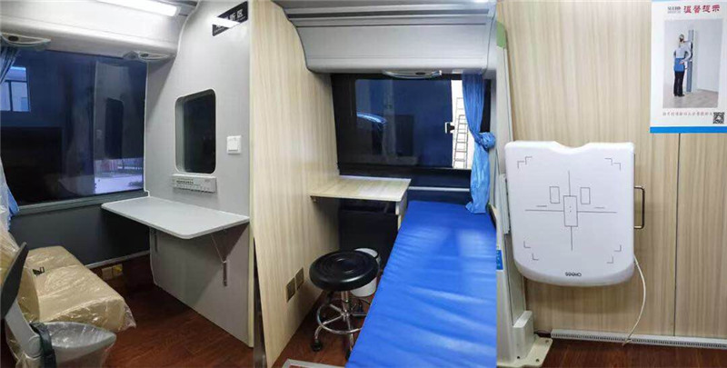 整车根据流动医疗临床需求而设计,从根本上避免了车俩改造对车身整体结构性的破坏;整车低底盘人性化设计,关爱行动不便人群、整车内环境优化系统,有效解决了车内空气换气难题,消除交叉感染。