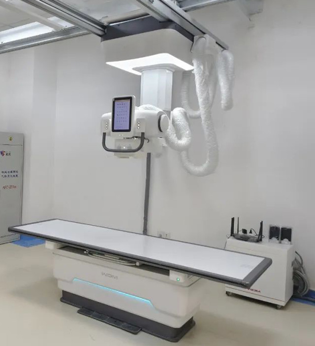 提高医院的影像科的医疗服务水平,满足满足人民群众不断增长的医疗需求,促进医疗技术快速发展。医院都引进悬吊DR拍片设备新一代数字化X线摄影系统。标志着医院的诊疗水平又上升一个新的台阶。悬吊DR满足人体头部、胸部、腹部、腰椎、四肢等部位的数字摄影检查,可以检查呼吸系统疾病,心脏系统的疾病、骨关节系统的疾病,子宫输卵管造影、胃肠道造影,.有职业病体检筛查尘肺病功能。通过DR数字化摄影,分段连续、重叠采集数字化图像,利用软件对图像进行拼接的方式来获得全脊柱、全上肢或全下肢的图像。新设备的图像更清晰,临床拍摄避免患者再次搬运和移动产生的痛苦,是创伤骨折患者的福音。辐射减少受照剂量50%,后处理能力强、图像质量高。有效降低操作难度,缩短工作流程,尤其适合大批量体检。