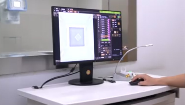 辐射输出重复性测量,保持检测空气比释动能和曝光条件不变。曝光测量,并且重复10次进行测量记录所有的数据。依据贝塞尔公式计算其重复性。DR空间分辨率的测量检定,打开视野灯后将分辨率测试卡放在视野中心。调节视野窗大小,降衰减模体放分辨率卡上面。完全覆盖照射点,调节SRD为1米。然后在控制室设置曝光条件进行曝光。也是一样电压为70千伏,调节为10毫秒,进行曝光。调节窗位,读取所能分辨的为DR的空间分辨率。在图像上测出光野与照射野的差距。