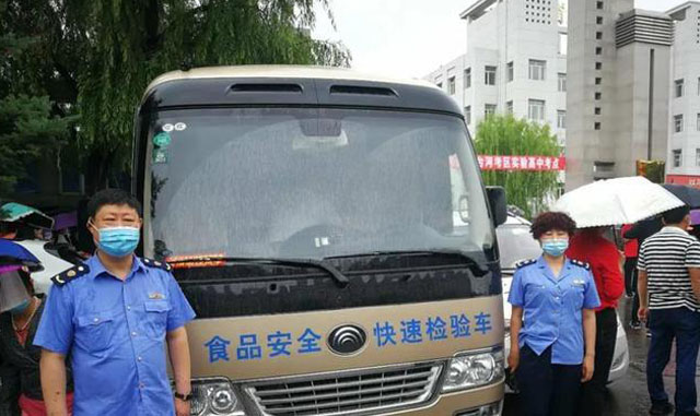 由于疫情情况推迟了一个月,一年一度的高考7月7日开始这几天举行。全力做好高考重大活动保障工作,切实保障高考期间师生饮食安全要做好食品安全保障工作,确保学生吃的放心、吃的安心。食品检测车开进校园高考考点。对食品流通、餐饮、学校食堂及考区进行检查。食堂从原料采购、粗加工、切配、面食制作、烹调、备餐、分餐、餐用具的清洗消毒环节全程把关,提前介入、风险防控。2020年高考是比较特殊的一年,学校考点就餐人数多,疫情还没结束处于疫情防控期间。这样对食品安全的要求更高了。食品检测车的高效高质量检测确保高考期间饮食安全。