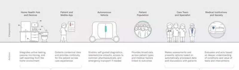 比如现在有个公司最近就提出了一个大胆的设想。那就是让具有人工智能的自动医疗车,方便轻微疾病患者的就医就诊。按照设计,如果得了轻微的疾病。病人并不一定马上前往医院。而只需要在家里等待。聪明的自动医疗车就会如约而至地来到病人的家门口。病人走入车中,地板会自动称重。它的鸭梨敏感度可以测量身体质量指数。椅子上有声音传感器。能够像听诊器一样听到人的呼吸声。收集病人的生理数据。并且会自动通过巨型屏幕和AR投影。指出感觉不适的部位。如果对这种自我诊断不太放心的话。自动医疗车还可以立即远程连线专家。对病人进行面对面的会诊。诊断完成后。自动医疗车就会发送诊断报告和治疗方案到手机APP上面。同时医疗车还配备了一些日常药品。如果患者需要的话也可以立刻拿到药。人工智能的医疗车优点不用说大家也看得到,感冒咳嗽,发烧头痛,身体小的异常交给数字化工具有助于提高医治效率,有效分配社会医疗资源。