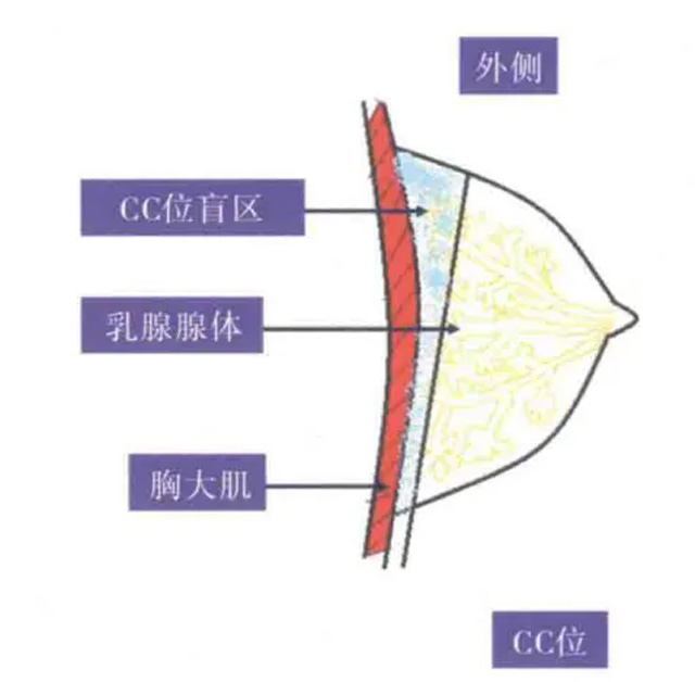 一、操作方法,医护人员站在要检查乳腺的内侧,检查的人面向乳腺DR,检查台调至乳腺的下缘转角平面。提高可运动乳腺下皱褶,提升的乳腺下皱褶缘接触影像探测器的托盘。然后一只手放乳腺下面,另外一只手放乳腺上面。将乳腺组织牵拉。乳头放探测器托盘中心位置。手将乳腺固定在此位置上。提升对侧乳腺,检查的人转动。对侧乳腺放在影像探测器托盘的拐角上,受检者面向乳腺机,面部转向非检测,受检测手臂下垂、外旋,受检者头部向前伸向球管侧,使前面的乳腺组织摆在影像探测器上。影像探测器托盘胸壁缘,将乳腺后外侧缘提升到影像探测器托盘上,这应在受检者无旋转下完成。进行压迫时,固定乳腺的手向乳头方向移动,皮肤皱褶仍然存在,则用手指在压迫装置外侧缘滑动,用它展平外侧的皮肤皱褶。