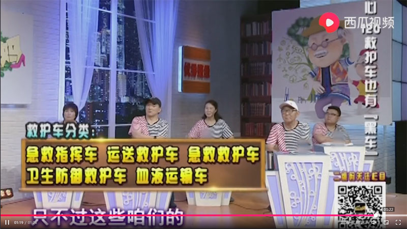救护车有没有分类呢?比如说这个病人是心脏病,这个病人是高血压晕倒了,那个病人脚受伤了。如果这个是小朋友,又是要派什么救护车呢?专家现场给了解答,按国家标准来讲,救护车是有分类的。但是并没有分的那么细致,它可以分为急救指挥车,发生一些大型事故,然后群死群伤很多人,就需要有个上级领导,到现场进行一个指挥工作。第二个是我们常见的运送病人的运送救护车,这种救护车它一般是运送一些病情比较平稳的,它上面有常规的抢救措施,第三类是叫急救救护车,这种救护车上面装的设备就非常齐全,主要用于运送一些非常危重的病人,因为对一些危重病人能够在途中开展一些特别的抢救,比如说上面有呼吸机,进行心肺复苏等等。第四个卫生防御救护车,这种救护车上面会配备一些负压吸引装置,它可以把病人呼出的带有病毒的气体,通过过滤然后再消毒以后,再排放到空气当中,然后防止这些病毒传播,还有比如说一些运血的,血液运输这方面的对他要抢时间。所以他们也需要救护车,血液在常温下我们知道保存时间是不长的。所以它需要专门的保温设备,这个就是血液运输车。其实救护车的分类还是比较细的。