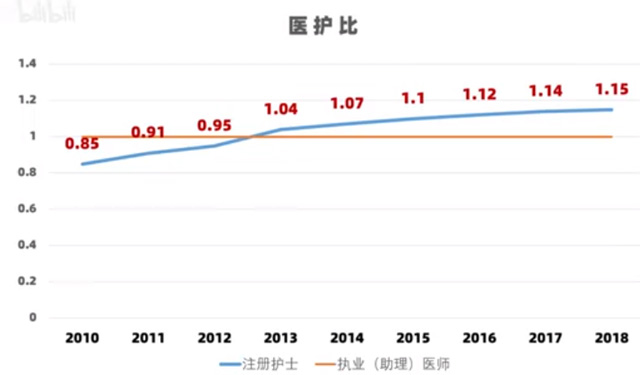 在医院内我们是极度缺乏人才,在院外就又是严重的人才过剩。供需两头失衡的情况。医院招聘力度为什么不加强呢?为什么会出现这种又缺又满的情况呢?这个要从护理专业的发展讲起,对于临床医学来说,护理起点低,发展非常缓慢,从建国到改革开发者几十年的时间一直处于中专的教育水平,原地踏步的状态持续了很多年。直到了80年代才开始招收护理本科的专业,跟成立护理中心,一直不是特别重点优先发展的科目。护理行业的学历普遍偏低,专业素质不是很高,导致护士群体不被人重视。没什么话语权,国家的护理项目收费不是很高。护理工作缺少收费项目,收费相聚价格低于成本价格。导致了占技工总人数大半的护理队伍这个大群体,所创造的收入占不到总收入的2%,护士群体的自身价值没有得到有效体现。也没有通过经济效益来体现,在医院里面护理就沦为了成本部门。所以就需要严格控制人数,医护人数都是倒挂比例。医生比护士还多,到2013年才持平,到现在医护比也差不了多少。比世卫组织的要求还低很多,如果达到世界卫生组织的要求就可以增加500多万人的护士岗位。护士价值体现不了这个是问题的根源。弊病所在。