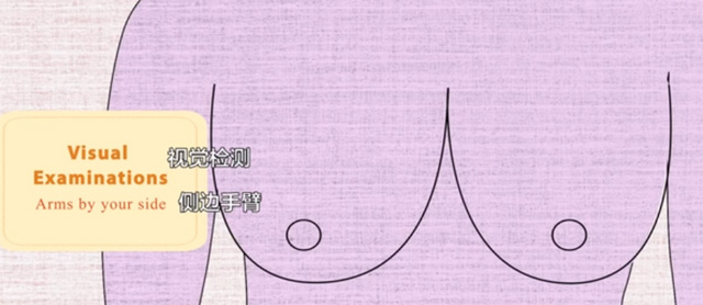 采用以下的两种方法:将胳膊举过头顶,双手按住腰部,绷紧胸部肌肉。这两种方式可以让对接下来的部位有进一步的检测。改变一面胸部的形状和大小,乳房皮肤或者乳头凹陷起皱。更好的感知胸部的变化,腋下和锁骨区域更准确,可以躺下来,因为胸部组织平均分布在身体周围,这样会更容易感觉到有没肿块。需要注意的是肿块肿胀肥厚在胸部或者腋下位置,在腋下区域的任何扩大以及锁骨上面的淋巴结肿大。