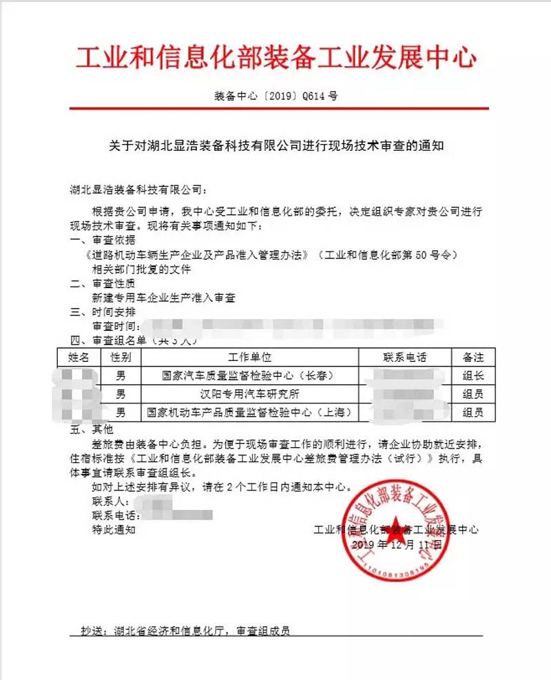 2019年12月19日湖北省beat365在线体育官网装备科技有限公司迎来了工信部委派的三位技术审查专家,三位专家对我司申请的医疗车,献血车,负压救护车,等专用车企业准入进行现场技术审查。