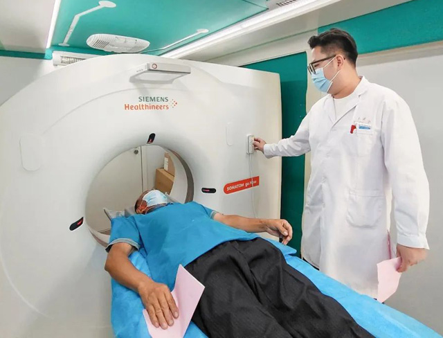 怀疑一个病人,比如说头痛、或者是肢体活动不灵,从我们的这个诊断经验来说,我们考虑可能他有脑梗塞了。比如说高血压,血压特别高的时候,如果说怀疑有一侧肢体活动不灵 ,还有言语不清的时候,我们怀疑他有脑出血。移动CT车提供了检查结果的支持。让基层共享优质医疗资源。16排车载螺旋CT机这个没有时间和空间的限制。真是太方便了。在家门口享受到了CT检查。移动CT车的使用,使医学检查更加全面,诊断更加清晰,大大提高了广大群众的医疗体验。根据病情选择就地治疗或通过绿色通道转诊,节约了医疗资源,卫生院不需要再购置CT设备。移动CT车块头大,而且科技含量高,展现它的移动性和便利性。车体采用铅板隔离CT设备,能有效防止射线辐射污染。而且外观跟普通厢式货车无异,具备CT检查的全部功能。