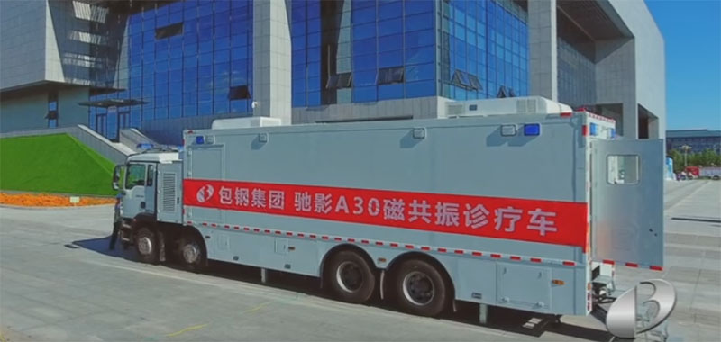 车载磁共振医疗车不会超高和超宽与普通9米厢式货车基本相同,可在正常通行公路、隧道和负荷大于28吨的桥梁。车辆随时可自主行驶移动,停车即可启动磁共振系统扫描。医疗车已具备全地域、全天候、全道路的适应性:可在-40 ℃ ~ 65 ℃的温度下和海拔5500米正常工作,适应高温、高湿、干热、湿热、低温等多种环境;单程最大行驶距离2000公里;可由普通民用电网供电,也可使用自发电机供电,自发电机可支持系统连续工作超过100小时。这些指标均已达到严苛的军用医疗车辆标准。扫描一位患者只需10-20分钟。移动化的磁共振医疗车可将大型医疗诊断设备和医疗技术下沉到基层,为基层民众提供多种高端诊断服务,如偏远地区的地方病、常见病巡检,多种高发病早期普查,普通X光设备难以确诊的颈椎、腰椎椎间盘病变诊断,关节及软组织损伤诊断,神经系统疾病诊断,以及康复检查等。