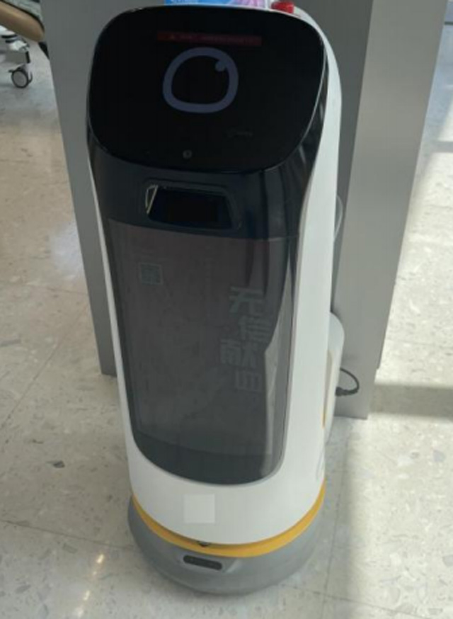 ▫入口处的迎宾机器人,具备引导讲解、互动娱乐、广告宣传等多项功能,极大解放人力,增强体验;