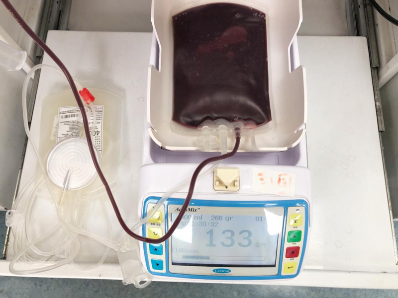 首先献血时候对血液的初次筛选,采集无名指的血,是因为无名指一是滑液囊不向手掌深部延伸;大拇指跟小指头的肌腱活动范围广,发生感染的话炎症会范围大。无名指在五指中不如其他手指的的功能大,所以都在无名指上采血。还有采血过程中,献血屋的工作人员会在手臂位置绑着一条白色的带子。这个叫压脉带,一次性止血带。采血过程中一直绑着压脉带是有助于减缓血液回流心脏的速度,采血得到顺畅效果。献血时候血袋在采血称上面不停的摇摆,是因为血袋里有抗凝剂。采血时候如果不用这个措施血液会发生凝固效果,采血称一定频率不停摇摆,使抗凝剂与血液充分混合,从而达到使血液不凝固的目的。还有在采血过程中还有三个试管。采集好的血液会送往血站的成分供储科进行分离制备,为最大程度确保每一袋血液是安全的,而试管则会被送到成分检测科进行血液检测。血站要对所有采集回来的血液标本进行丙氨酸氨基转移酶(ALT)、血型检测、乙型肝炎病毒、丙型肝炎病毒、获得性人类免疫缺陷病毒(HIV)、梅毒螺旋体检测。每个血袋都有条形码,标识以及可追溯性。同一献血码至少在50年内不得重复。